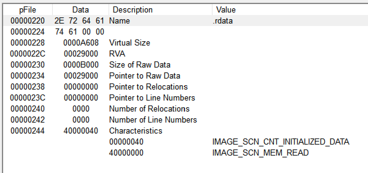 4. PointerToRawData: 파일에서 섹션의 Offset(길이)