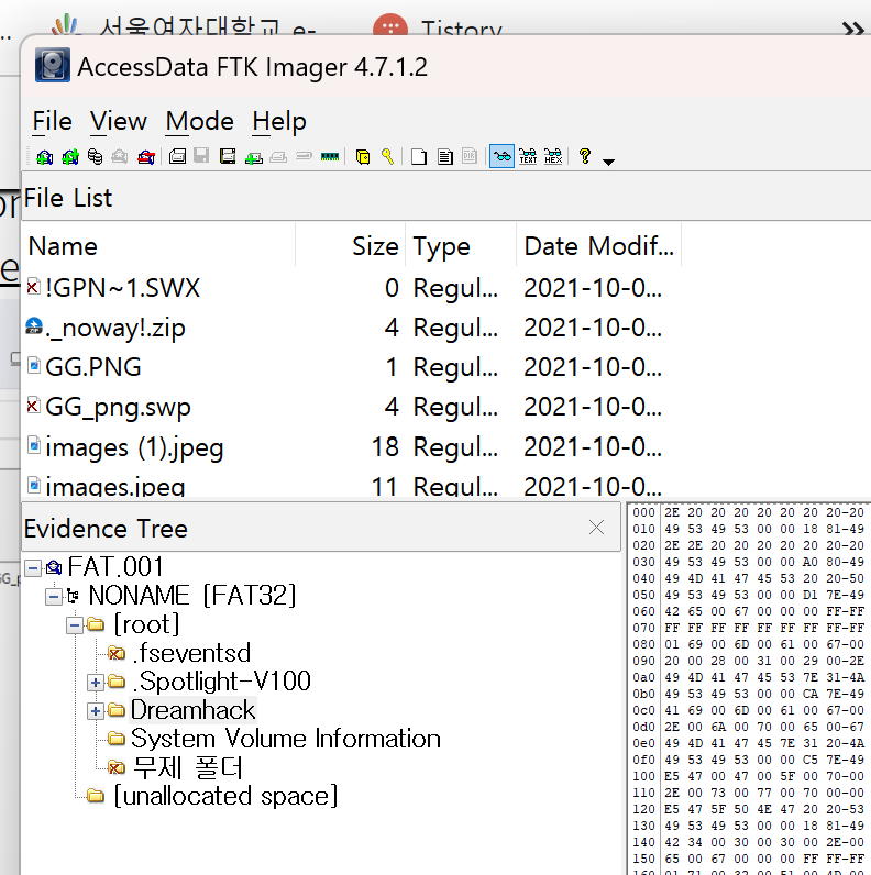 다시 ftk에서 열어보자 (개인적으로 autopsy보다 ftk가 더 편해서 해당 툴 사용했다...)