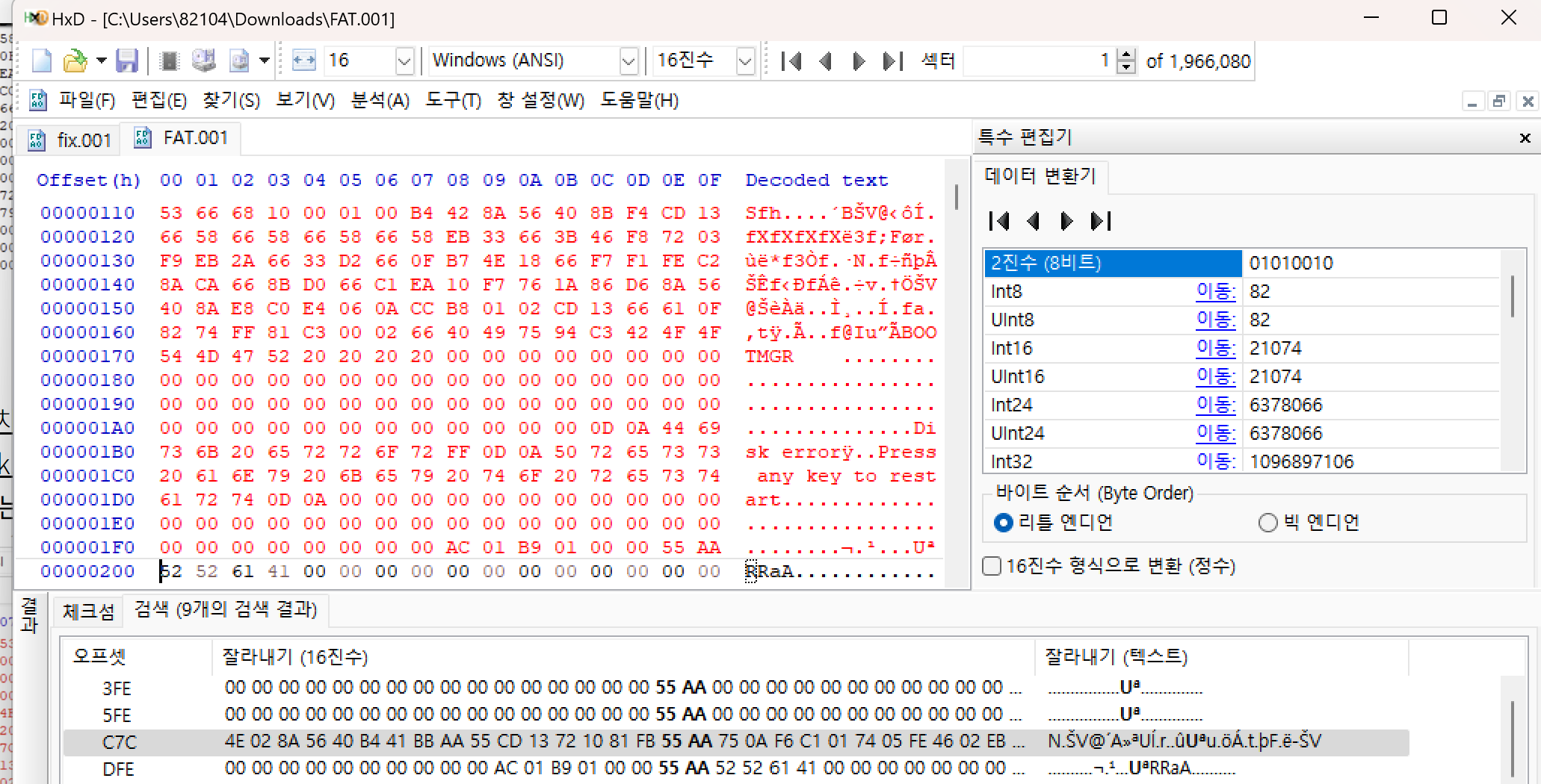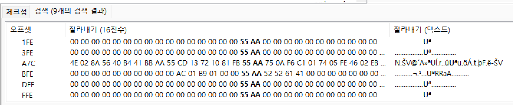 FAT 파일 복구를 검색해서 일단 시그니처인 55 AA를 검색했다.
