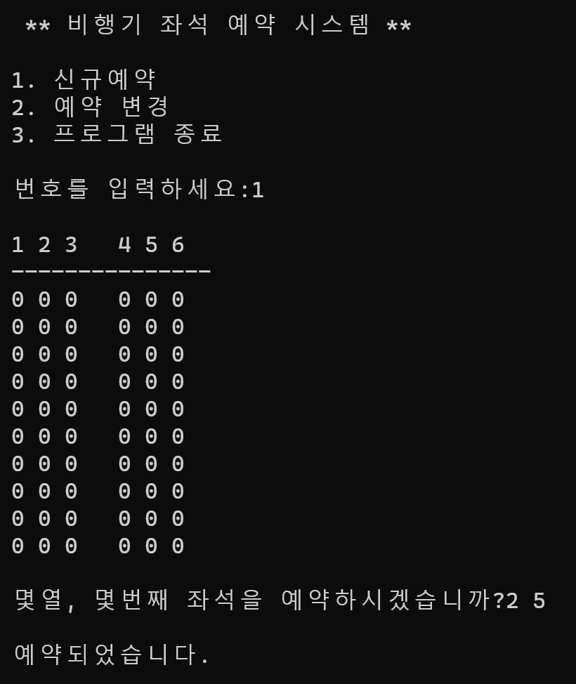 3. if, else문 이용하여 좌석 예약/변경/시스템종료 만들기 (O)